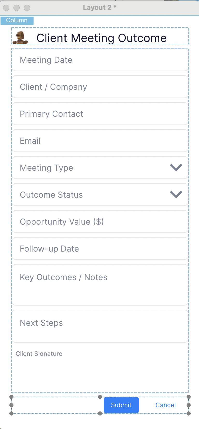 So, I think I am going to forget about trying to get that calendar icon I once had into the Date field and move on with the rest of Lesson 3.