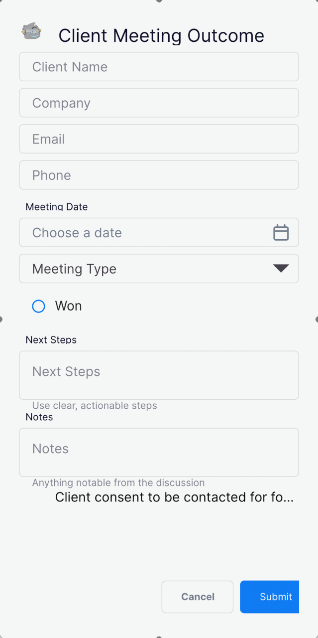 – Size and position: right-justified inside Meeting Date field, vertically centered