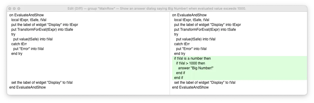 - Click the “View Diff” button to see the difference across your handler as a whole: