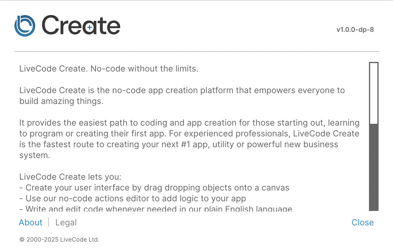 Ever took a look at the “About Livecode Create” dialog on macOS?
